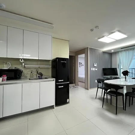 부엌에서 아파트 식사를 원하는대로 식사를 준비 할 수 있습니다. 신축 엘레베이터있는 방4개 화장실2개 아파트 아파트는 서울 김포 공항에서 30km 떨어져 있습니다.